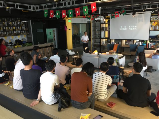讲座就安排在大楼里的共享空间,同事们随意而坐,有点沙龙的感觉。