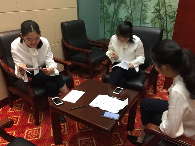 经过多次反复的推敲,一辩、三辩的稿子改了一次又一次,直到上场前,还在修改;二辩的提问也是否定了一个又一个,直到大家都认可为止。承受着压力的姑娘们,自己也会悄悄地约了“私练”。